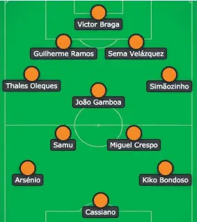 ESTORIL E VIZELA, POR VIA DIRETA, E AROUCA, FRUTO DE UM RETUMBANTE TRIUNFO (5-0) ANTE O RIO AVE NAS DUAS MÃOS DO PLAYOFF, AFIANÇARAM O REGRESSO À DIVISÃO MAIOR. UM PRÉMIO JUSTIFICADO PARA OS EMBLEMAS DA II LIGA, UMA COMPETIÇÃO QUE, EM 2020/21, REVELOU MAIS TALENTO FORA DO UNIVERSO B DO QUE VINHA A SER HABITUAL, O QUE COMPLICOU A ELEIÇÃO DO MELHOR ONZE DO EXERCÍCIO Victor Braga (Arouca, 1992). Guardião brasileiro com um largo trajeto nas divisões inferiores do futebol indígena efetuou duas épocas de alta consistência em Arouca, ajudando a catapultar o clube do CdP à I Liga, como fica atestado no admirável registo de 17 balizas-virgens – apenas 18 golos sofridos – em 30 jogos. Com um bom controlo espacial da baliza, ao explorar os seus reflexos, a sua elasticidade e uma agilidade inusitada num guarda-redes robusto, sobressai pela agressividade que emprega nas saídas aéreas e na resolução de situações de um contra um ante os avançados rivais, até porque é destemido e sagaz no controlo da profundidade. Thales Oleques (Arouca, 1994). Depois de cinco no Braga B, sem debutar pela equipa principal, o lateral-direito rumou ao Arouca, onde cumpriu o terceiro exercício como indiscutível. Apto no capítulo defensivo, principalmente na defesa do espaço exterior, revela acutilância nos desdobramentos ofensivos, tirando partido da sua velocidade e da sua disponibilidade física. Agressivo no ataque à profundidade sobre o corredor, em busca de cruzamentos para zonas de finalização, mostra também competência a perscru- tar espaços interiores ou a promover variações rotundas do centro de jogo. Guilherme Ramos (Feirense, 1997). Defesa-central destro, que concluiu o seu trajeto de formação no Sporting, evidencia argumentos que lhe permiti- rão afirmar-se na I Liga. Poderoso fisicamente, sem perder inabi- tual velocidade nas deslocações num jogador com a sua robustez, e forte no jogo aéreo, consegue impor-se nos duelos, ao revelar-se autoritário no desarme. Assume, com conforto, ações de condução e de construção, com qua- lidade no passe a diferentes distâncias. Sema Velázquez (Arouca, 1990). O internacional venezuelano regressou, em fevereiro, a Arouca, para formar uma dupla coriácea com João Basso, capital para o registo de 11 triunfos subsecutivos que cerraram com a ascensão ao escalão maior. Fortíssimo fisicamente, e com ca- pacidade de liderança, revela pre- dicados no capítulo posicional, o que lhe permite cortar linhas de passe, e na antecipação. Apesar de recorrer a processos simples, não se inibe de assumir ações de construção e de condução. Simãozinho (Penafiel, 1995). Contratado ao Chaves, após passagens por Estoril, Braga B e Trofense, o canhoto, que Paulo Fonseca chegou a debutar na equipa principal dos guerreiros num jogo da Taça da Liga em 2015/16, realizou época consistente, beneficiando da estrutura com três centrais utilizada por Pedro Ribeiro, que o libertou para o papel de lateral/ala. Forte, rápido e disponível, mostrou ser uma lança permanente no ataque à profundidade pela esquer- da na sequência de ações de con- dução e de desmarcação, solicitando, através de cruzamentos venenosos, várias assistências para situações de finalização. Além disso, é agressivo na pressão, na reação à perda e na recuperação de posição. João Gamboa (Estoril, 1996). O médio-defensivo poveiro, que repartiu o seu trajeto de formação entre Rio Ave, Varzim, Benfica e Sp. Braga, realizou o melhor exercício como sénior, reabrindo as portas do patamar principal. Além da aptidão como recuperador, reflexo de um bom sentido posicional, ofereceu qualidade às duas primeiras fases de construção dos canarinhos, combinando passes curtos com variações pungentes do centro de jogo. Mostrou também engodo pelas balizas rivais, tanto na execução de penáltis como no aproveitamento aéreo de bolas paradas laterais. Samu (Vizela, 1996). Sem espaço no plantel do Boavista, o médio-centro canhoto não se atemorizou, no verão de 2019, com a perspetiva de descer dois escalões para rumar a Vizela. Figura central na dupla promoção dos azuis, regressará à divisão maior – 267 minutos em 3 épocas – com estatuto robustecido. Nuclear em ações ofensivas e defen- sivas, nunca se esconde e gosta de estar no centro do jogo, tirando também partido da sua imen- sa flexibilidade. Distingue-se pela argúcia a protagonizar ações de condução e de desmarcação, harmonizando passe, drible curto e remate forte e espontâneo. Bom executante de bolas paradas, revela argúcia e agressi- vidade na pressão, na antecipação e no desarme. Miguel Crespo (Estoril, 1996). O jogador do ano da II Liga. Com uma trajetória invulgar, que incluiu passagem pela formação do FC Porto, viu-se obrigado a renascer, ao serviço do Ne- ves, nos distritais de Viana do Castelo, antes de ingressar no Merelinense e no Braga B. Médio-centro de infinda disponibili- dade física, participativo em ações defensivas e ofensivas, exi- be atributos na condução e a pro- vocar desequilíbrios no um contra um, o que lhe abona eficácia na saída de zonas de pressão, como também expõe atributos no passe na chegada a zonas de finalização, e na execução de bolas paradas. Agressivo e pressionante, demonstra argumentos no desarme. Arsénio (Arouca, 1989). Contra- tado, em janeiro, aos sauditas do Al Fayha, o antigo extremo de Moreirense e Belenenses metamorfoseou-se no grande reforço de inverno do segundo escalão, como atestam os cruciais 6 golos e 4 assistências,. Capaz de atuar a partir dos dois corredores laterais – ainda que com maior predileção pelo esquerdo, sobressai pela sagacidade a assumir ações de condução e de desequilíbrio, acasalando qualidade nos cruzamentos – em bola corrida e parada – e nos passes de rutura com um remate forte de pé direito. Kiko Bondoso (Vizela, 1995). Natural de Moimenta da Beira, o rei das